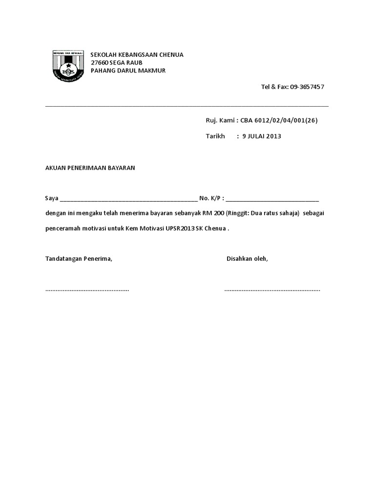 Surat Pengesahan Penerimaan CEK. SURAT AKUAN PENERIMAAN WANGBAYARAN ProgramProjekAktiviti Kepada Unit Kewangan Bahagian Pejabat Bendahari Universiti Teknologi MARA Saya dengan ini mengesahkan bahawa telah menerima wang sebanyak RM pada daripada untuk bayaran Terima kasih Tandatangan Penerima Tarikh Nama Penerima. The collection that consisting of chosen picture and the best among others.